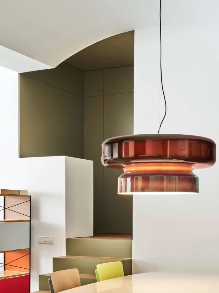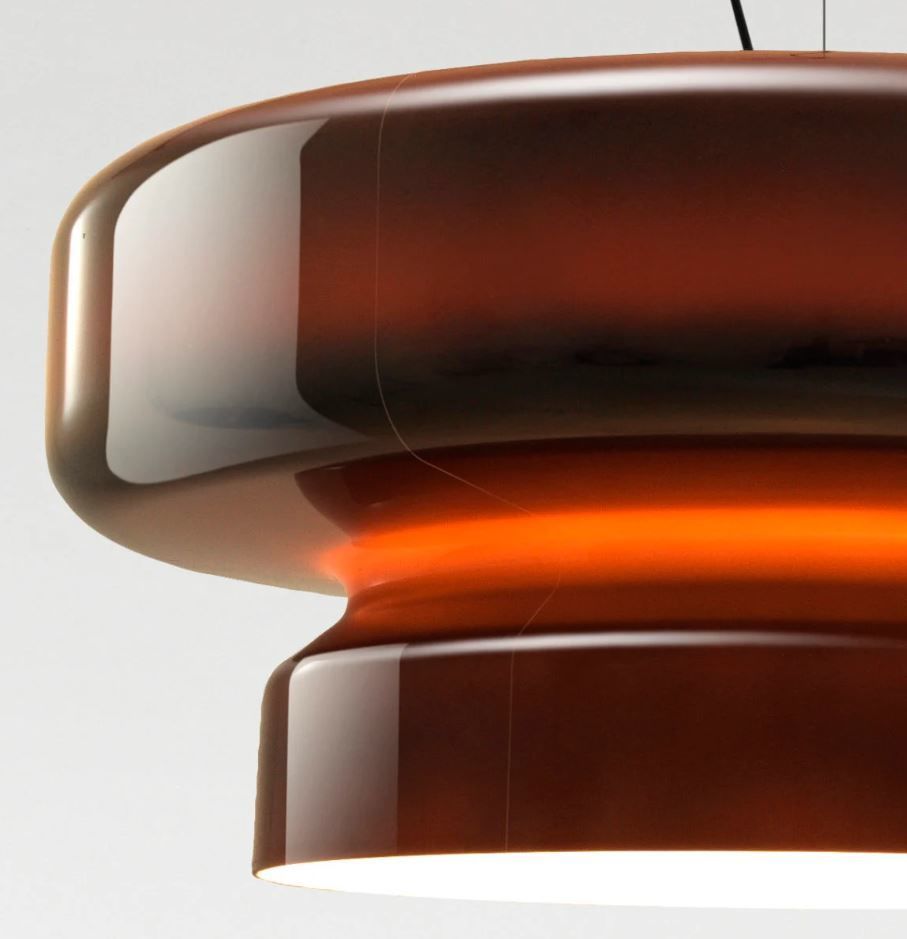 Colgante decorativo, E27 20W, construido en policarbonato rotomoldeado translucido bicapa, exterior ambar e interior blanco. Incluye lampara LED 12W calida, Philips o similar.