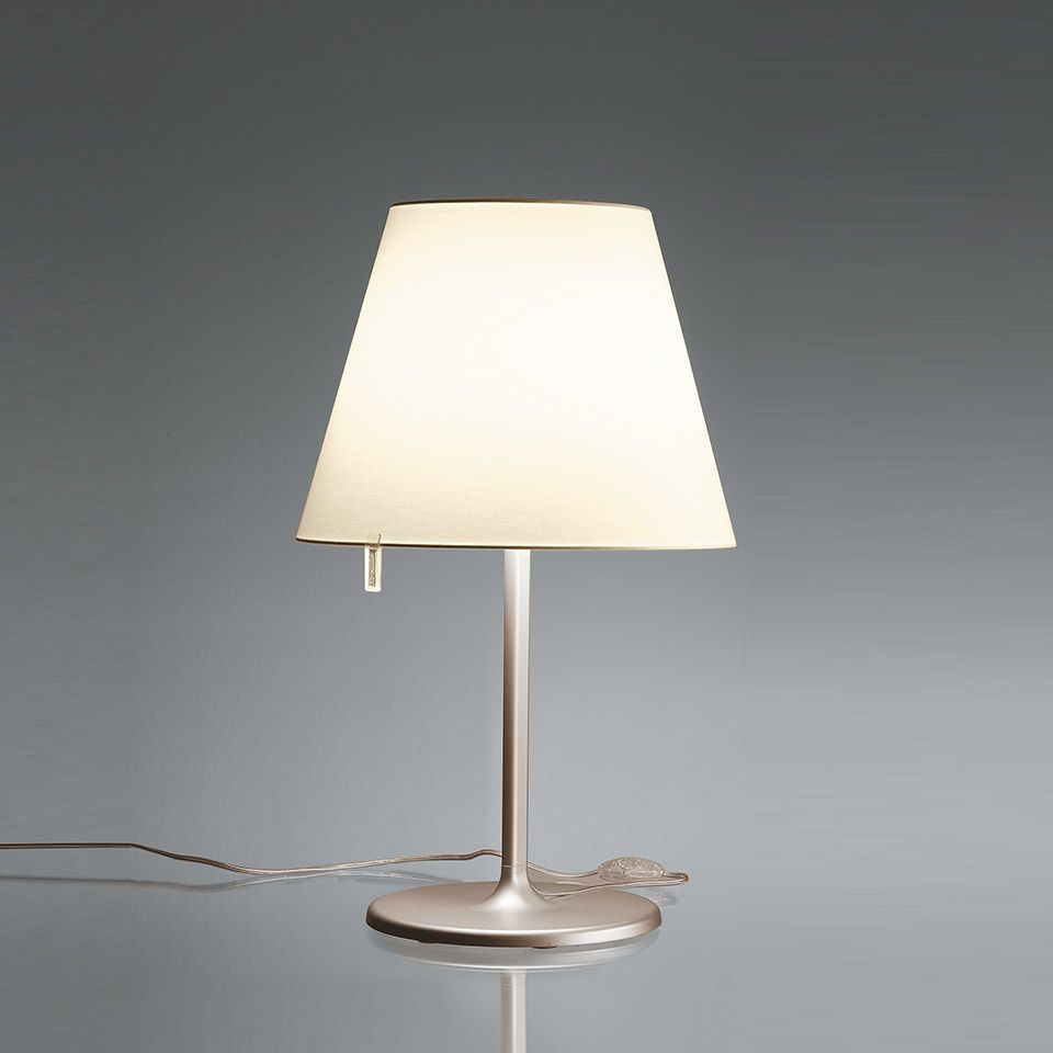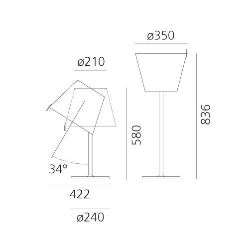 Lámpara de mesa, E27 60W, cuerpo construido en aluminio y zamak terminación bronce, con pantalla en tela color blanco (Ø350/210). Incluye lámpara LED bulb 12W/240V no-dimmerizable blanco cálido, 2700K, Philips o similar.