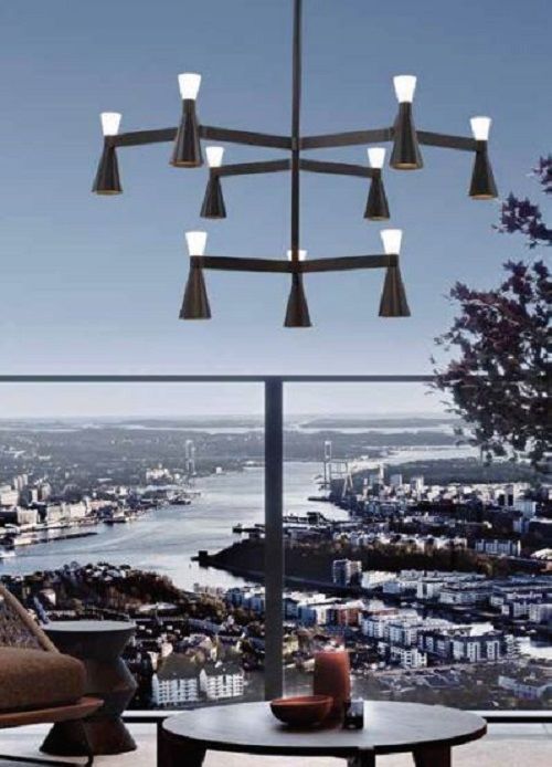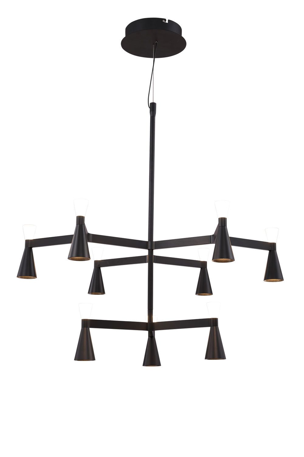 Luminaria de suspender 9 luces, LED 36W, blanco cálido 3000K, cuerpo construído en aluminio terminación negro y difusor opal. Incluye módulos LED 36W/3000K.