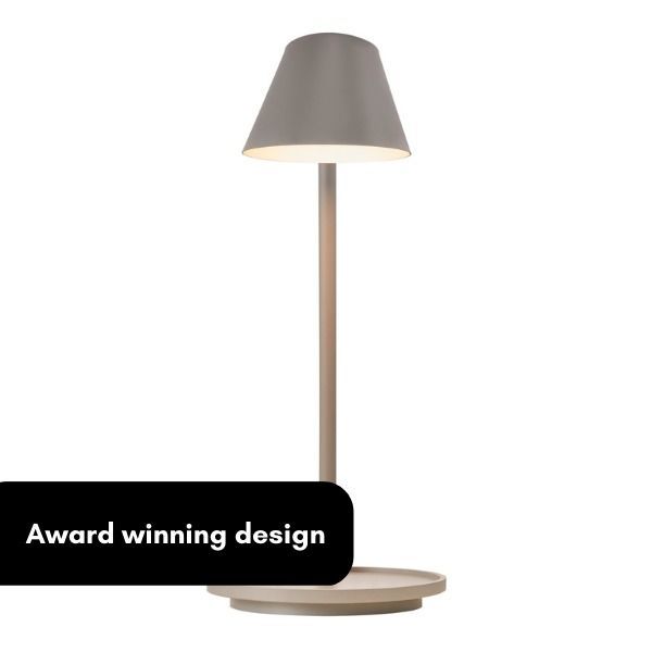 Lámpara de mesa , LED 12W, blanco cálido. Construido en aluminio, terminación gris. Incluye puerto de carga USB y lámpara LED 12W, 700Lm, 2700K, dimmerizable.