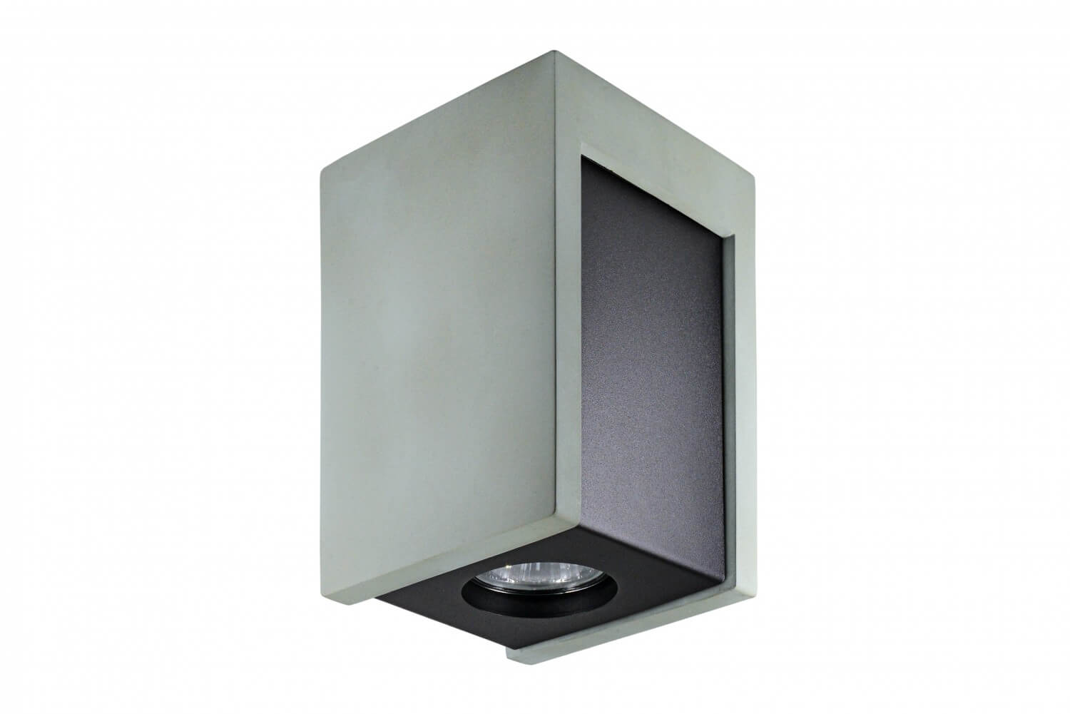 Luminaria de adosar de techo, GU10 25W, cuerpo construído en cemento y aluminio color negro. Incluye lámpara LED GU10 5W/240V/38° no-dimmerizable, blanco cálido 2800K, 500lm, Megaman. Medidas: 100 x 100 x 147mm